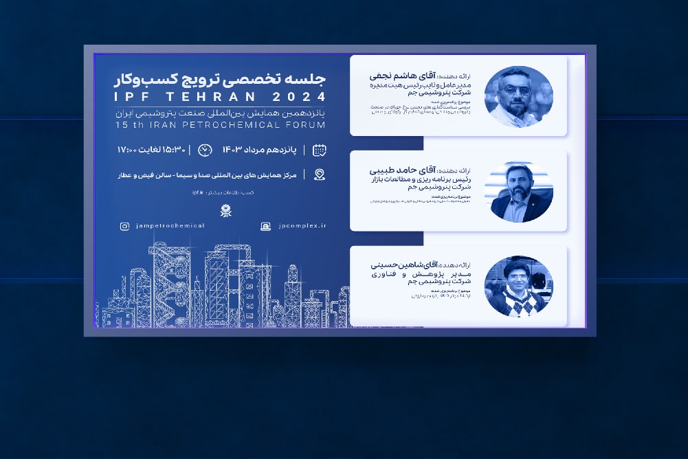 همچنین در سومین جلسه تخصصی ترویج کسب و کار جم در همایش IPF، دکتر شاهین حسینی، مدیر پژوهش و فناوری پتروشیمی جم با موضوع “ارتباط مؤثر R&D با زنجیره ارزش” ارائه و سخنرانی خواهد داشت.